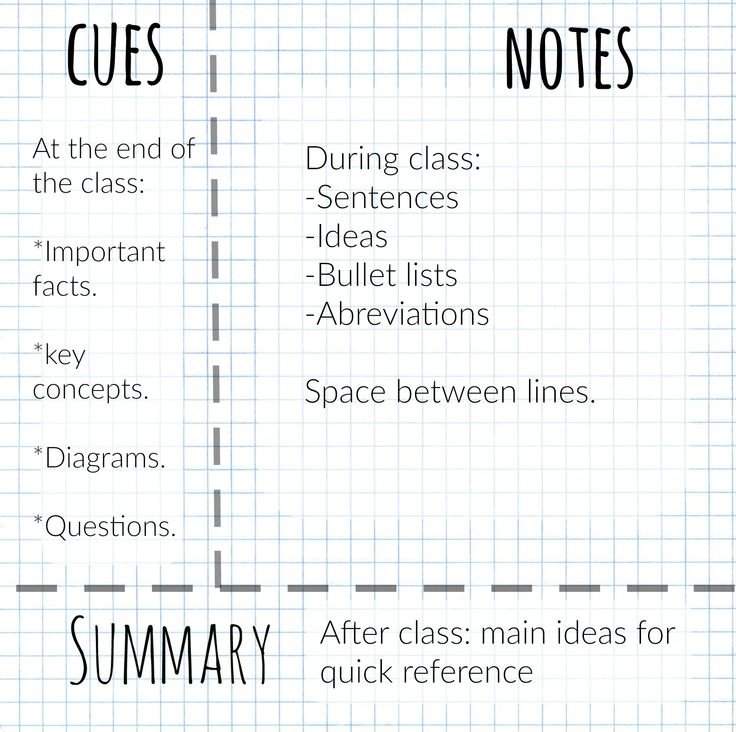 - Use bullet points or shorthand in the note-taking column to keep up with fast-paced lectures.